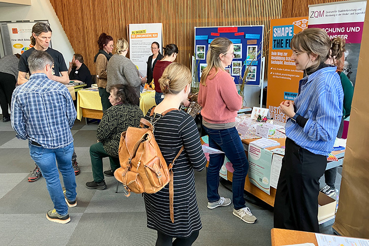 Zusätzliche Impulse und Handlungsanreize bot der "Markt der Möglichkeiten". Hier konnten sich die Teilnehmenden an unterschiedlichen Themenständen informieren. Mit dabei waren unter anderem der Europoint, das Team Diversity der Landkreisverwaltung, das Präventionsnetzwerk Kinderarmut sowie die Initiative act4transformation und die Pädagogische Hochschule Schwäbisch Gmünd.