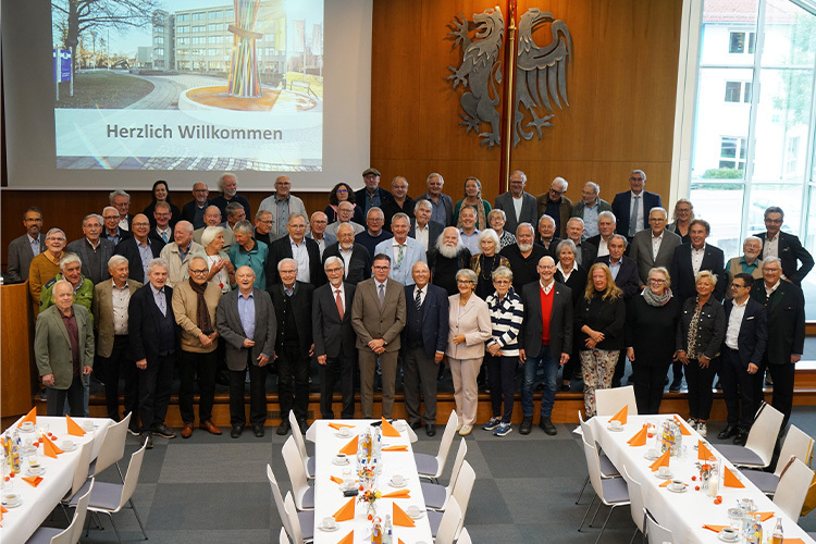 Eine große Zahl an ehemaligen Oberbürgermeistern, Bürgermeisterinnen und Bürgermeistern sowie Kreistagsmitgliedern traf sich kürzlich im Ostalb-Kreishaus in Aalen. Landrat Dr. Joachim Bläse konnte auch seinen Amtsvorgänger Alt-Landrat Klaus Pavel begrüßen. Dr. Bläse sprach über die aktuellen kreispolitischen Herausforderungen, unter anderem über die finanziellen Rahmenbedingungen und die Infrastrukturmaßnahmen im Bereich Schienen- und Straßenverkehr sowie medizinische Versorgung. Vorangegangen war eine Besichtigung des Aalener Union-Areals in der Wilhelm-Merz-Straße, wo derzeit der sogenannte Zweite Verwaltungsstandort der Kreisverwaltung gebaut wird. Dort sollen ab Sommer 2027 alle Geschäftsbereiche des Aalener Sozialdezernats einziehen.