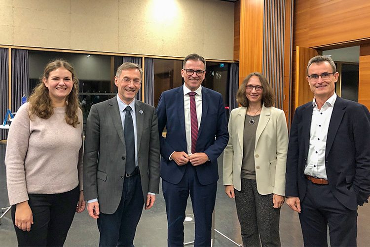 Hauptredner des Abends war Prof. Dr. Kai-Uwe Schrogl, Sonderbeauftragter für politische Angelegenheiten bei der Europäischen Weltraumorganisation (ESA) und Präsident des International Institute of Space Law (IISL). Er beleuchtete die Ziele und Herausforderungen der